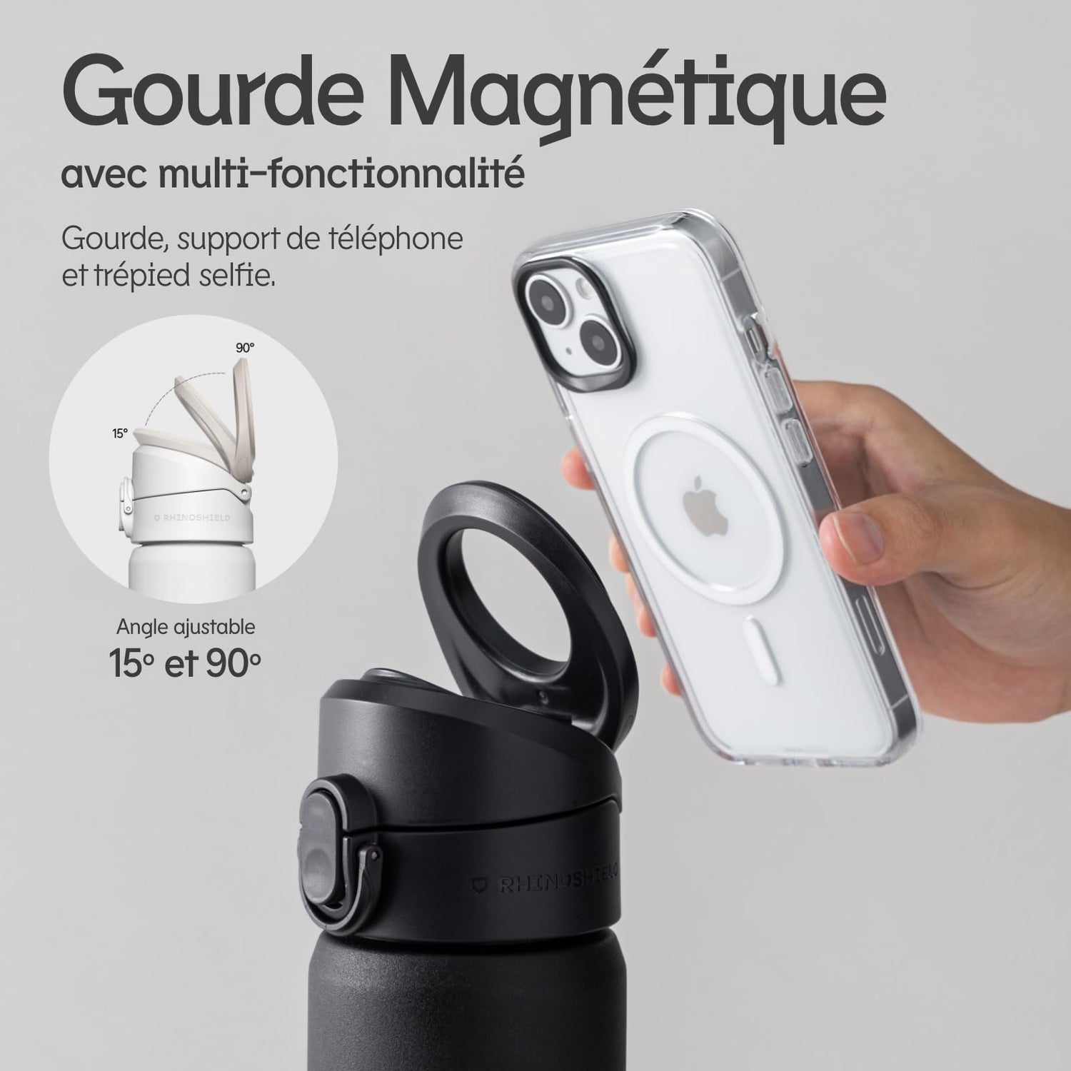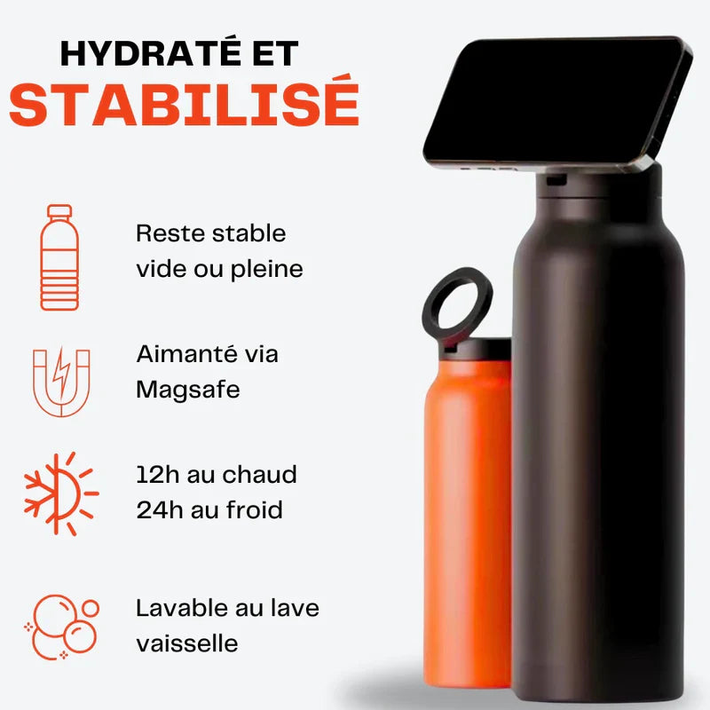 La Grip Gourde est bien plus qu’une simple gourde. Conçue en acier inoxydable, elle intègre un support téléphone pratique, te permettant de maintenir ton smartphone au niveau de la bouteille. Idéale pour le sport, le bureau, les déplacements ou les vidéos, elle combine hydratation, praticité et modernité.
